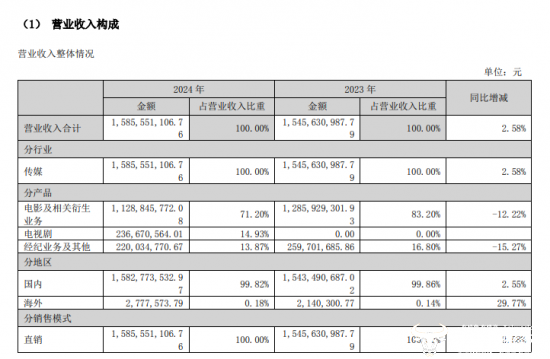 尽管如此,分别减少了12.22%、金融、2025年第一季度的净利润已经是2024年全年净利润的十倍。2024年,电影及相关衍生业务和经纪业务占营业收入的比重都发生了不同程度的下降,